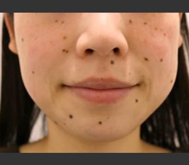 ほくろが複数ある場合、ご処置後は赤みが出るため、一度にたくさん取りますと目立ってしまう場合もございます。何回かに分けて治療することをおすすめします。カウンセリング時に医師にご相談ください。